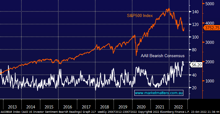 The S&P500 has now corrected 28% from its January high and we simply believe enough is enough at least for this leg of the decline, this view is supported by investors’ sentiment hitting another bearish extreme, recently the AAII bearish consensus reached nearly 60%, a level not seen since the sheer panic of the GFC in 2008.