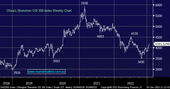 Chinese equities have enjoyed a 4 week-long rally which has a bull market beckoning as China stock traders return to work this morning. The latest data has shown that consumption has rebounded strongly as the country reopens suggesting a sustained economic recovery has commenced, clearly good news for stocks after their 41% plunge from early 2021 highs. This is one upside move we would not fade as Beijing usually gets its way and they want a return to growth.