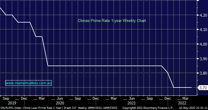 Yesterday we saw China cut its mortgage rate as the PBOC commenced its post COVID stimulus in a very targeted manner i.e. the ailing property market. However, as we saw yesterday other parts of their economy such as retail sales are also struggling and we anticipate further moves sooner rather than later which should eventually become supportive of our struggling resources stocks.