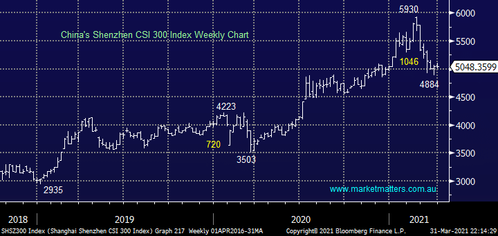 Yesterday we saw China’s Manufacturing PMI improve to its highest level this year on increasing demand even while COVID lingers around, yet again the Chinese economy is leading from the front. Concerns around rising bond yields and the defaulting hedge fund Archegos Capital have weighed on stocks but we now feel after correcting almost 18% the risk / reward has returned for the buyers.