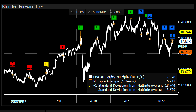 We think a sector-leading result from the sector leader, with MM remaining long CBA in both the Flagship Growth & Active Income Portfolios. In terms of valuation, it’s always expensive, but it’s not excessively so versus history, trading on 17.5x forward P/E versus 16.2x historical average with the range being between 12-21x.