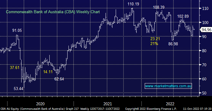 Australia’s largest bank has slipped -6% in 2022 which is a solid performance considering the weakness across risk assets plus they have paid out a $2.10 fully franked dividend in August. This is clearly Australia’s most expensive bank trading on an Est. P/E for 2023 of 16.3x. For as long as I can remember, people have been trying to 2nd guess when its peers will play some valuation catch up but that strategy has proved elusive, CBA continues to deliver quality results but as Australia’s largest mortgage lender the question is how will margins be squeezed next year as mortgages start to become unfixed and borrowers look for value.