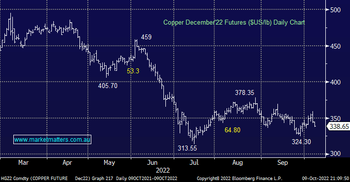• We believe copper will trade in a $US300-$US400/lb range over the coming 6-months, which sounds like our view towards stocks!