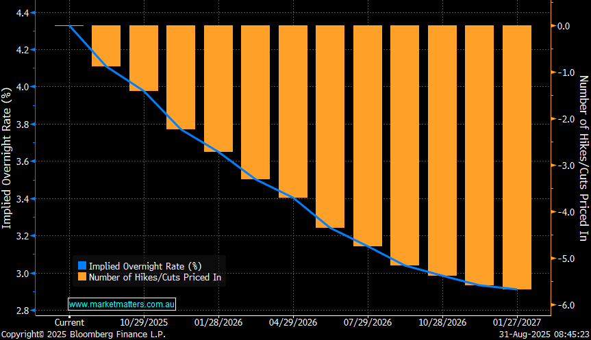 - The futures market is currently pricing in an 88% chance of a Fed 0.25% cut this month.