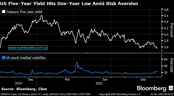 The recent rally in Treasuries driven by concerns around US regional bank credit exposures, combined with a resurgence in trade tensions, eased on Friday as lender shares stabilised and comments on China by US President Donald Trump steadied the broader stock market. The reversal tracked an early rebound in US stocks after Fox Business televised part of an interview with Trump in which he said the high tariffs he has threatened to impose on China aren’t sustainable. However, bonds have walked a clear bullish (yields lower) through 2025.