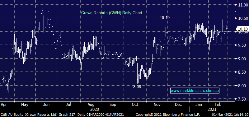 Crown continues to take bad news in its stride and we’ve often talked about that being a sign of underlying strength. Today it was rating agency Moody’s that put CWN on negative credit watch, although in the same breath they said “The rating confirmation reflects our view that Crown has good potential to maintain its investment grade credit profile, and is willing and able to remediate shortcomings identified by the Bergin Inquiry in New South Wales, as well as any additional shortcomings that may be identified by regulatory investigations in other states.”