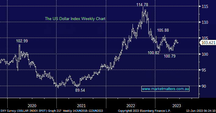 We continue to expect the influential Greenback to rotate in the 101-105 area with the recent rally from Q2 lows consolidating but not in any manner to cause us to deviate from our short-term bullish roadmap. Our preferred scenario is the $US tests the 105-106 area before at least taking a rest on the upside i.e. not much further.