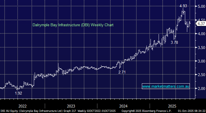 Brookfield returned in September, coinciding with DBI’s pending ASX 200 inclusion, offloading their remaining ~130m shares at $4.05 (a ~6.9% discount). That sale marked the end of their position. Shares have since recovered to $4.41.