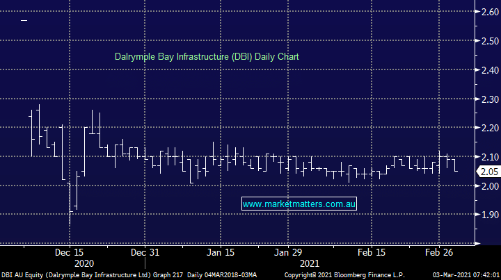 We’ve mentioned DBI before however they reported last week and the result was a little confusing, particularly around the distribution given they talked about an aggregate $22.5m being paid out, however the key takeaway is that it’s on track to meet prospectus forecasts and yield more than 8% based on current prices.