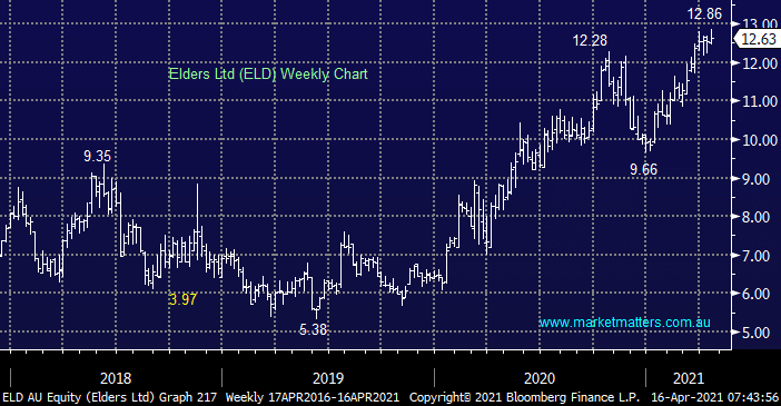 The weather has been unusually kind to ELD in 2021 with plenty of rain around, this combined with surging cattle prices and record crop yields has been good news for the agricultural sector. At MM we like the outlook for its various sectors but above $12 the upside feels limited however a meaningful pullback if stocks take a seasonal dip would bring ELD back onto our radar.