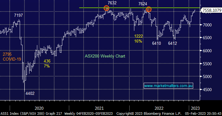 The ASX200 continues to enjoy an extremely strong start to 2023 with heavyweight names like Commonwealth Bank (CBA) and CSL Ltd (CSL) crushing the bears e.g. year-to-date they are up +8.3% and +9.1% respectively.