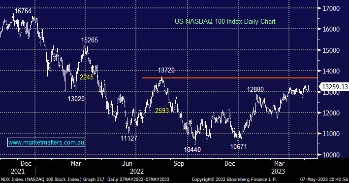 US stocks rallied strongly on Friday night as regional banks finally managed to bounce after falling a painful -20% into Thursday, this combined with Apple Inc (AAPL US) +4.7% helping the NASDAQ to its best close since August 2022 resulted in strong gains across the major US indices e.g. S&P500 +1.85%. With US earnings coming in ok and central bank meetings now in the rear-view mirror we wouldn’t be surprised if the worst of May is already behind us.