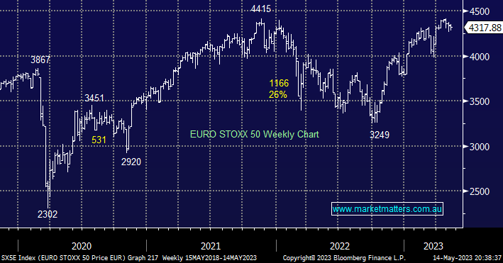 - No change, the EURO STOXX 50 looks set to test the 4500 area in the coming months i.e. only 5% away from Friday’s close.