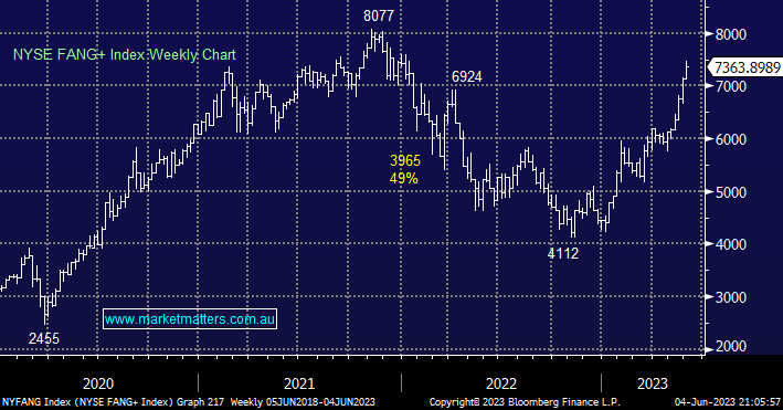 The NYSE FANG+ Index has sprung back to life over recent months with AI the latest market craze taking the highly traded growth index up over +80% from its November low. With Apple Inc (AAPL US) poised to make fresh all-time highs this week and Microsoft (MSFT US) not too far behind it’s hard not to adopt a positive stance toward tech and that’s before we consider the surge by NVIDIA.