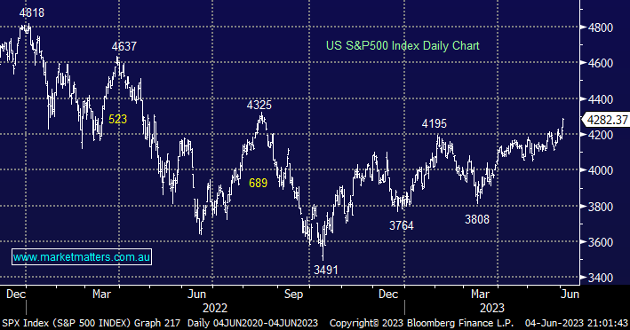 The S&P500 continues to climb a wall of worry decimating the portfolio performance of the numerous non-believers along the way. While the Tech Sector continues to climb it feels to us like the rest of the market will play some catch-up as opposed to the likes of the Artificial Intelligence (AI) bubble bursting so early after NVIDIA’s (NVDA US) outstanding result.