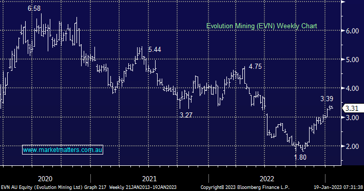• We like EVN back around $3 while our initial sell target is another 40% higher.