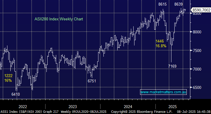 The ASX200 had plenty of reasons to fall on Monday, but again, come 4 p.m., the bears were left disappointed: Trump is throwing around tariffs again like confetti, the Dow dropped over 400 points, and the almost guaranteed RBA rate cut failed to materialise. The local market may have only closed marginally higher, but it was an impressive performance considering the respective headwinds with Michele Bullock leaving many analysts and everyday Australians surprised and disappointed at 2.30 pm – at MM, we also got it wrong, believing a 0.25% cut was likely. The RBA Chair decided that prudence was the better form of valour, looking for further clarity on inflation before adding to the two cuts we’ve already seen in 2025, but we found her rhetoric reassuring: