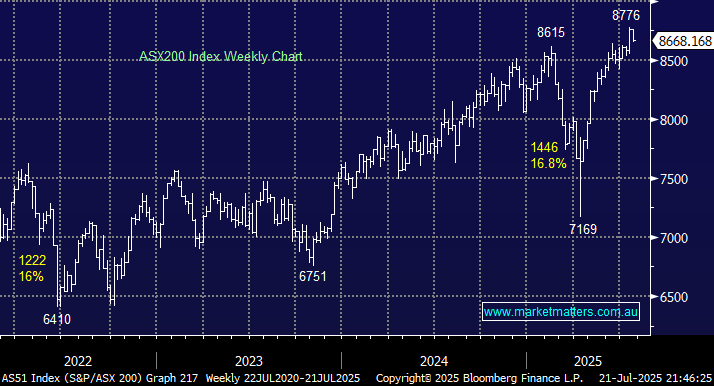 We are approaching the seasonally weakest two months of the year. Coincidentally, if the ASX200 closes under 8600 in the coming days/weeks, it will trigger a technical sell signal targeting the 8400 level. However, as we’ve discussed at length in recent weeks and witnessed yesterday, the market is not moving as one, with stock and sector rotation coming to the fore. If we do see further weakness in the coming weeks/months, we believe it’s likely to follow a similar path to Monday from a relative performance perspective.