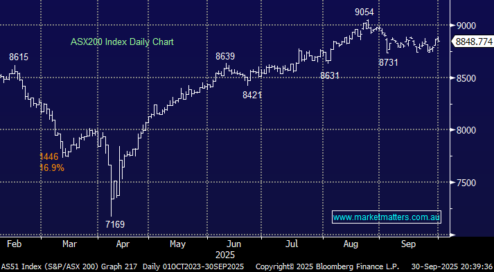 Considering the RBA caused the market to pare back its rate cut hopes, it was a quiet Tuesday with almost 40% of the main board closing higher. The banking shares weighed on the index through another noticeably polarised session, where another solid session by the copper and gold stocks supported the market. September may have traded primarily sideways, but it was still the Australian market’s worst month since March, although a +4.6% gain by the materials sector helped stem the losses, with the ASX finishing off 1.4% for the month, though a lot of dividends were paid.