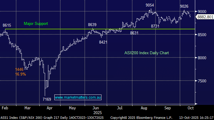 We think comments from Beijing will be key to whether the latest bout of October volatility is going to escalate further, potentially taking the ASX200 down towards major support ~8600. Overnight, risk assets rebounded on further softening of rhetoric between the two superpowers, and it seems for now we’re seeing posturing ahead of the meeting between Trump & Xi Jinping, earmarked for the 29th October.