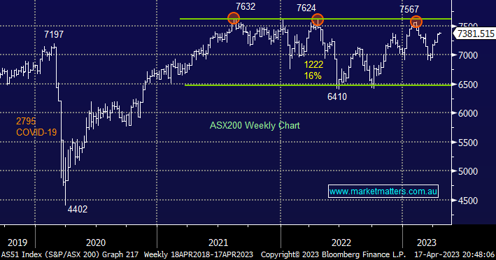 As expected the “Big 4” banks enjoyed the updraft from their US peers on Friday with their average gain being +0.6% whereas the regionals continued their drift ever lower with Bank of Queensland (BOQ) the worst on the day falling another -1.1% slipping towards fresh 2-year lows in the process e.g. so far in 2023 ANZ Bank (ANZ) has rallied +2.3% while regionals Bendigo Bank (BEN) and Bank of Queensland (BOQ) have fallen an average of -8.9% following the short-lived “Banking Crisis” in the US and Europe i.e. nobodies comfortable holding banks with any question marks over balance sheet strength.