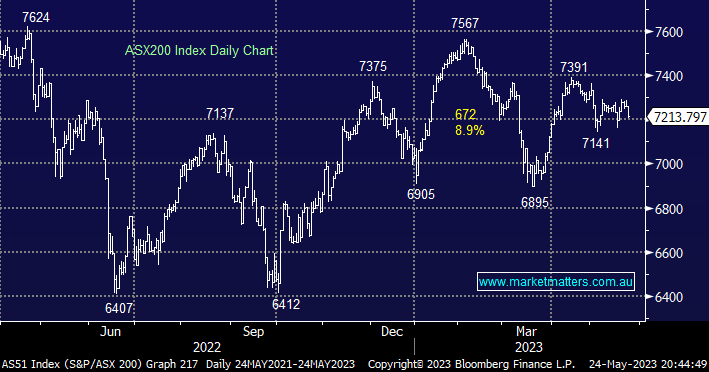The ASX200 compounded Monday’s poor afternoon falling another -0.63% yesterday as fears of a US debt default intensified as the standoff between Biden and McCarthy showed no signs of improvement – as we’ve said before let’s hope politicians put egos aside and find some middle ground for the sake of everyday Americans. Over recent weeks, we have been asked questions similar to, “What will happen if the impasse continues with the debt ceiling talks and the US cannot meet its financial obligations?”. The answer is we aren’t exactly sure but it’s unlikely to be pretty: