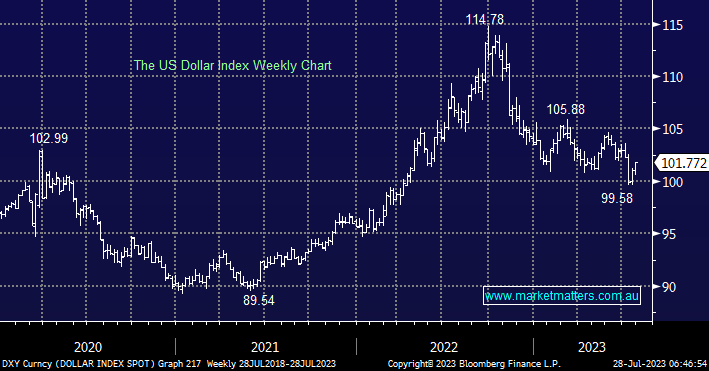 As subscribers know MM is bearish toward US bond yields through 2023 and if this outlook unfolds as we anticipate the likely path for the Greenback is also down, a great read-through for precious metals and to a lesser extent commodities in general. Overnight the ECB raised interest rates +0.25% as expected, while Christine Lagarde added that officials have an “open mind” on what to do next after 9 consecutive hikes took rates to 3.75% i.e. no great surprise as all central banks should be data dependant.