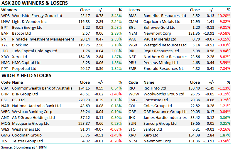 FMG -3.41%: the iron ore miner was out with 4Q production numbers today which were broadly in line. They shipped 48.9mt in the quarter, down marginally on last year however Fortescue hit the upper end of guidance in this respect for the full year with 192mt of iron ore shipped. First production out of their high-grade magnetite Iron Bridge project this week with the asset expected to contribute 7mt in FY24 before ramping up to 22mt/pa within 2 years. Total production for the year ahead was guided to 192-197mt, a small drop if you strip out Iron Bride’s contribution, while costs are expected to climb from $US17.50/wmt to $US18-19/wmt. No doubt a strong result operationally however costs and capex guidance put some pressure on shares today.