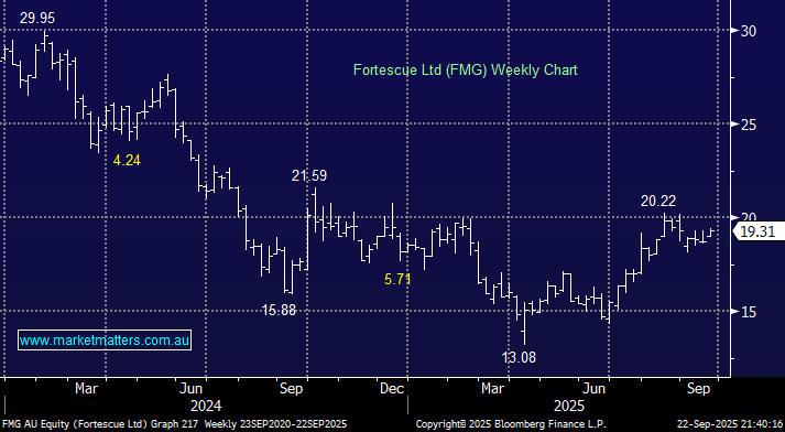 FMG is up ~6% year-to-date as iron ore continues to surprise the consensus bearish view. If we are correct and iron ore tests $U110 into Christmas, we can see FMG at least testing $21, or 8-10% higher.