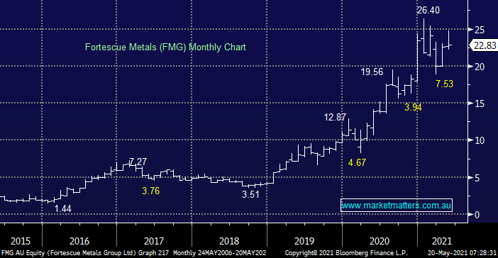 FMG is a stock very familiar with volatility and it could surprise many on the downside if the $US does indeed bounce ~5%. Another 20% on the downside would certainly spike our interest and although it sounds a big move the iron ore miner was trading around there in April.