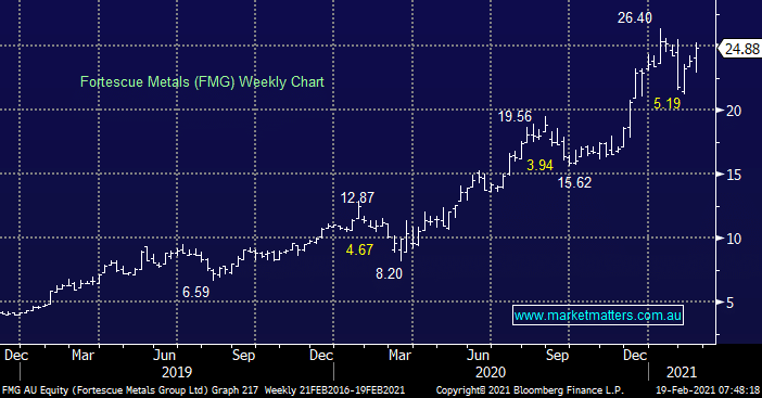 FMG has become an awesome yield stock over recent years and this week’s half-year result did nothing to taint the trend, assisted obviously by a clear tailwind from the rally in iron ore prices. They declared a $1.45 dividend which was at the high end of expectations and their targeted payout ratio implying the boards very confident moving forward. The companies on track to yield over 10% fully franked especially while the bulk commodity remains firm. Similarly to MIN we can see a break to fresh 2021 highs but an opportunity to accumulate closer to $20 fells highly likely.