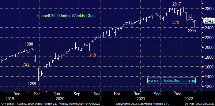 US stocks chopped around overnight as they weighed up the ongoing implications of the Ukraine invasion with domestic inflation concerns following oils surge well above $US100/barrel. Economically the US saw business activity soften due to ongoing supply chain disruptions while jobless claims retreated as COVID restrictions ease i.e. a mixed bag which was reflected in the uncertain moves by equities.