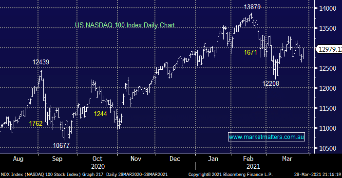 Last week the small cap Russell 2000 index followed our flagged roadmap for an imminent 10% correction, a move which was reflected in the Australian Resources Sector. After finally pulling back 11% the outperforming index has bounced strongly and although we are now 50-50 right here the ideal risk / reward scenario is we see a rally towards 2400 which ultimately fails and the index subsequently corrects the huge advance from last March.