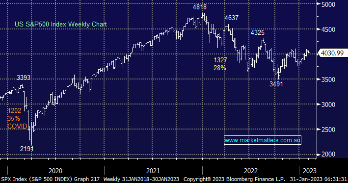 - Our preferred scenario is the S&P500 eventually breaks to the upside and tests the 4300 area.