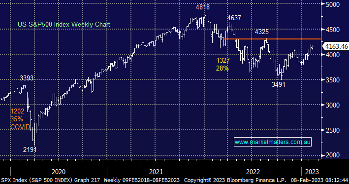 US indices rallied back towards their 4-month highs overnight led by tech as optimism increased that the Fed would not push rates too much higher although last night’s swings illustrated how fickle the market has become towards both data and talk around the path of the future for interest rates. However, overall we believe last night’s gains are very encouraging considering Friday’s Jobs Report and the latest comments from Powell i.e. the path of least resistance for stocks remains on the upside.