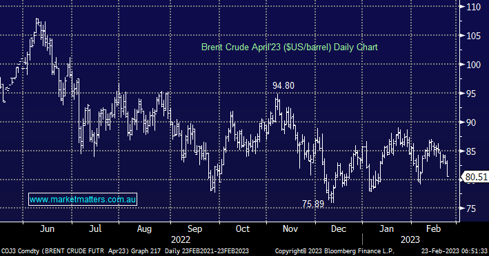 Crude oil has been drifting lower since last June with supply constraints due to the Ukraine-Russia war fully understood and built into prices, they are now trading slightly below where they were when Russia invaded its neighbour although prices had been edging up into that fateful day in late February last year.