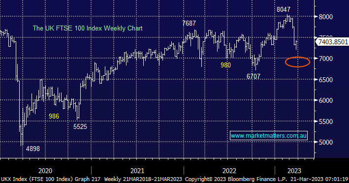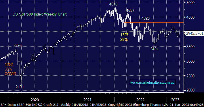 US stocks experienced another volatile session overnight but they finally closed with a flourish, the S&P500 advanced 0.9% helped by a rare positive session for the regional banks while the NASDAQ closed up +0.3%. It might surprise many purely local investors to know that the broad-based S&P500 rallied last week and it’s compounding these gains at the start of this week i.e. a very different feel to the ASX which is highly correlated to European indices and banks which has been a tough space over the last few weeks.