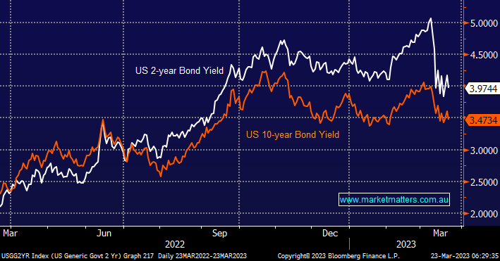 This morning’s hike by the Fed and the accompanying statement sent bond yields lower with the yield curve (spread between 2 & 10’s) still pointing to a recession but interestingly not as conclusively as it was before the recent banking crisis. Today’s move by the Fed suggests the Fed is confident they can navigate the dual challenge of rising inflation and the fresh banking crisis, the Biden administration’s decision to cover uninsured deposits at the failed 2 US banks would have helped Jerome Powell come to this conclusion although Yellen may have dented his confidence later this morning.