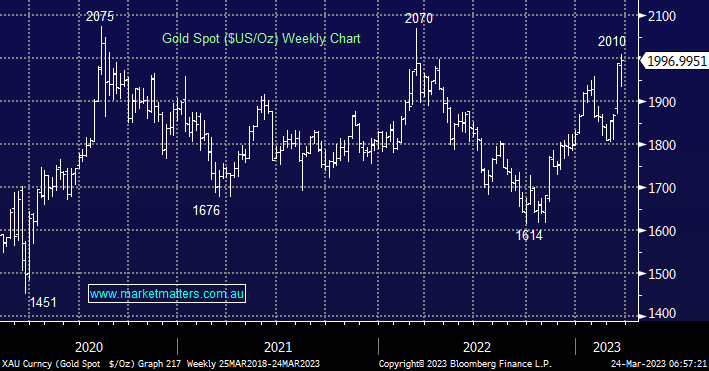 In a well-timed move considering todays report gold surged to fresh one-year highs on a day as bond yields edged lower with the US 2 years falling -0.14% to under 3.8%, while the $US was fairly flat.