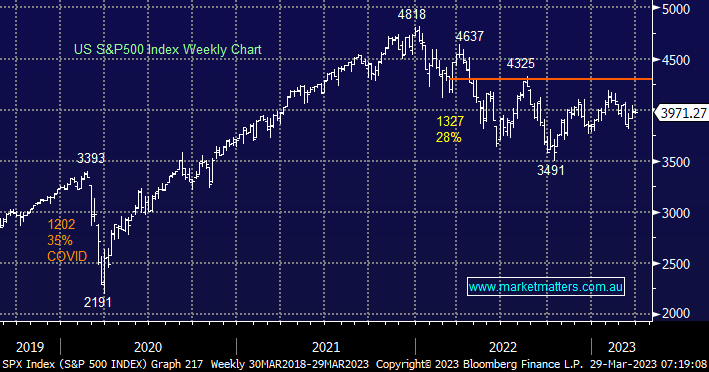 The US banking crisis continues to slowly improve but that is leading to a bounce in bond yields which is weighing on growth stocks e.g. the US 2 years have rallied from 3.55% to 4.07% in just 3 days.