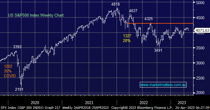 The US market took a hit following a night of disappointing earnings as investors weighed through the numbers to evaluate the strength of corporate America in the face of higher interest rates – heavyweights Microsoft (MSFT US) and Alphabet (GOOGL US) reported after the bell with both being decent beats. The standout losers were First Republic Bank (FRC US) -49%, General Motors (GM US) -4%. and UBS Group AG (UBS US) -4.7% while for the bulls PepsiCo Inc (PEP US) +2.2% beat expectations. Bonds rallied sending the US 2 years back under 4% as recession fears lifted in the wake of weak stocks.