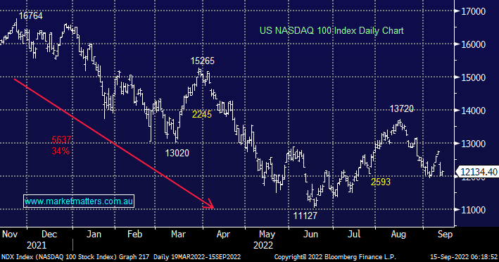 - US inflation remains hot and interest rates may go higher than previously anticipated but the rate-sensitive tech stocks remain in the middle of their June – Augusts trading range.