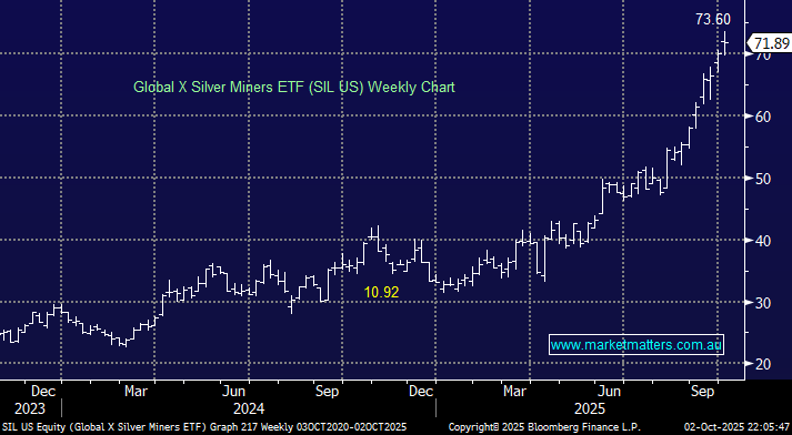 The vehicle that many international players use to invest in silver is the SIL ETF, which aims to track the Solactive Global Silver Miners Index, and it’s done a great job over recent years: over the last 12-months, the index has surged +110% while the ETF has gained +108.7%. The SIL ETF currently holds 46 stocks spread across the globe with around 59% exposure to Canada, 19.5% the US, 11.3% Mexico and 5.4% Peru, which we believe is good value for 0.65%. This is a major US ETF with a market cap of $US3.7bn, illustrating how ETFs can drive share prices.