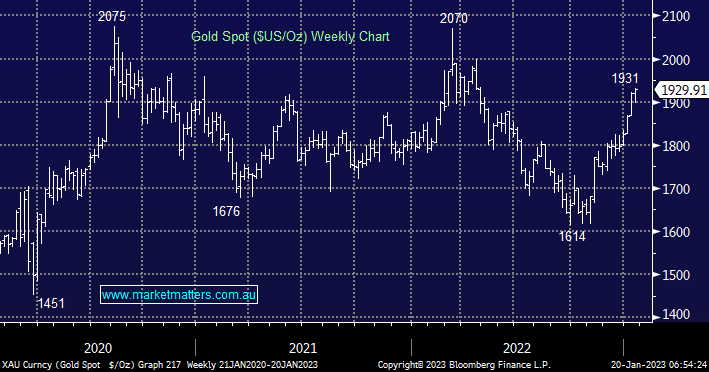Gold rallied $US25/Oz overnight making fresh 9-month highs, aided by a lacklustre session by the $US, the path of least resistance remains up illustrating why MM has continued to run our large overweight stance in the Gold Sector.