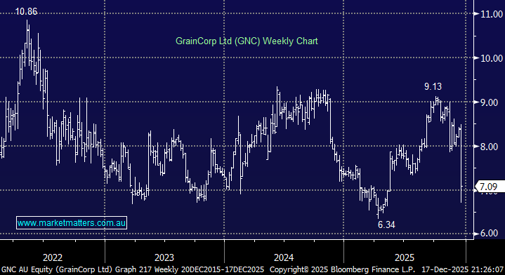 GrainCorp’s profits are highly sensitive to crop size and quality, which are directly driven by rainfall and growing conditions across Eastern Australia, not an ideal backdrop to forecast earnings, but as we’ve witnessed over the last few years, it can reward investors who are happy to sell strength and buy weakness.