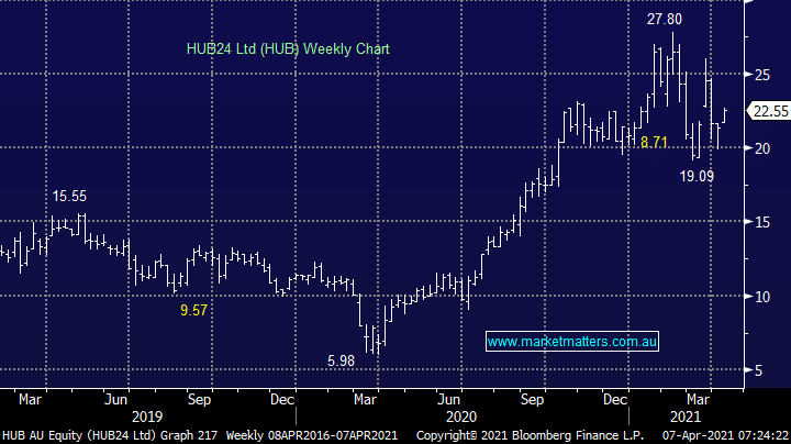 Independent platforms were sold off heavily last week as news broke that HUB’s closest competitor, Netwealth (NWL) had been given 12 months’ notice by ANZ that interest on cash accounts which is paid at 0.95% above the overnight cash rate would no longer be offered. The platforms take this rate, apply a haircut and pass on a significantly lower rate to their customers – it’s a nice little earner for them. While detail is fairly scarce on what this means for earnings we can make some assumptions and in the case of HUB, its ~19% correction from recent highs seems a large overreaction.