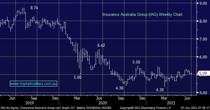 General insurance business IAG has fallen -10.2% this year while other sector names have rallied strongly e.g. QBE Insurance (QBE) +24.5% and NIB Holdings (NHF) +38.9%. MM holds this company in our Income Portfolio due to its excellent yield and at this stage we are looking for a catalyst to consider it for our Growth option, certainly one for the “hitlist”.