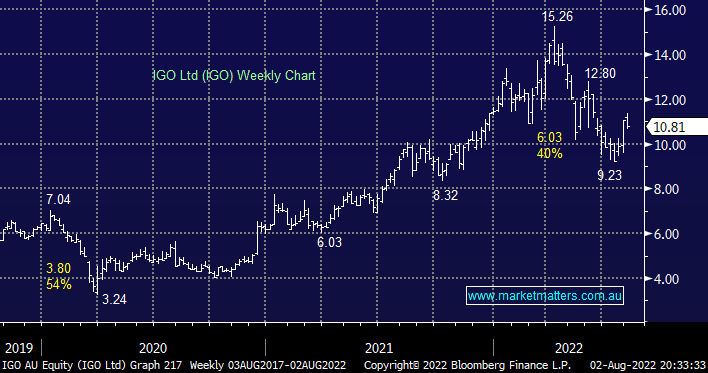 IGO hosted a very well-attended site visit over the weekend, particularly by Fund Managers which is not surprising considering this miner ticks the ESG mandates of many a manager through its nickel & lithium exposure i.e. prominent battery elements. As a holder and supporter of IGO let’s hope it wasn’t because they’re all long and keen to check on their investment – stocks need new buyers to go up!