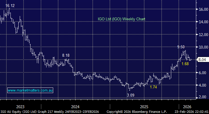 - We can see IGO making fresh 2026 highs if lithium runs but its not our favourite vehicle to play such a move.