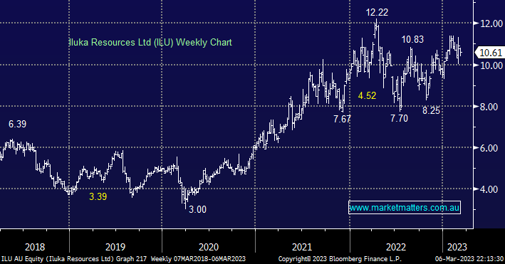 Mineral sands operator ILU traded ex-dividend 20c fully franked yesterday yet it only slipped 31c, a  solid result in our opinion considering the sell-off in China-facing resource stocks.